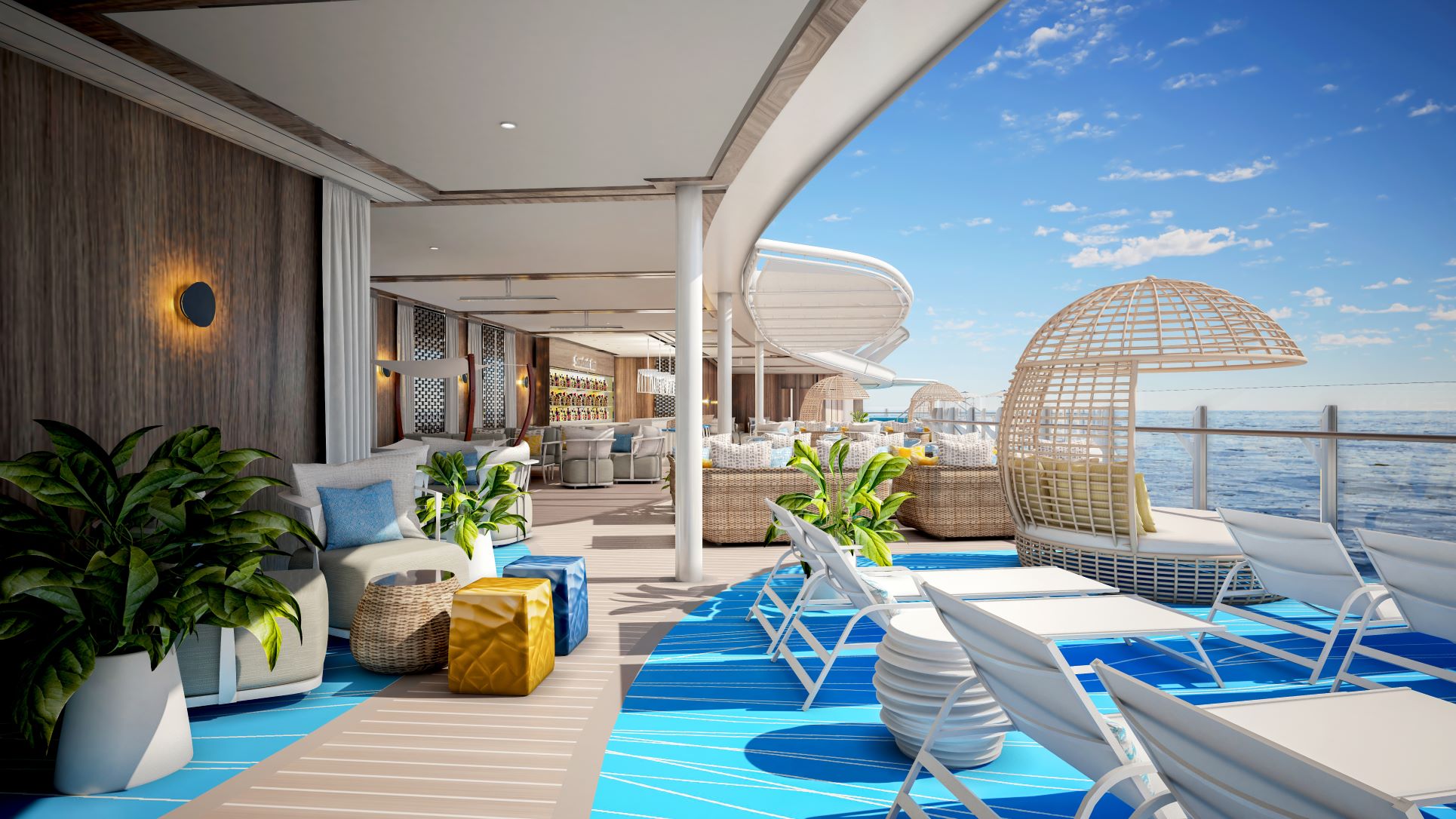 • The Vue – The happiest of happy hours can be found at this new cantilevered bar. The Vue offers panoramic ocean views from high above on the pool deck all day, and after sunset, it shines bright with a colorful mosaic canopy overhead.