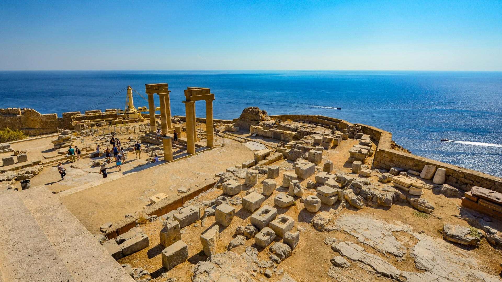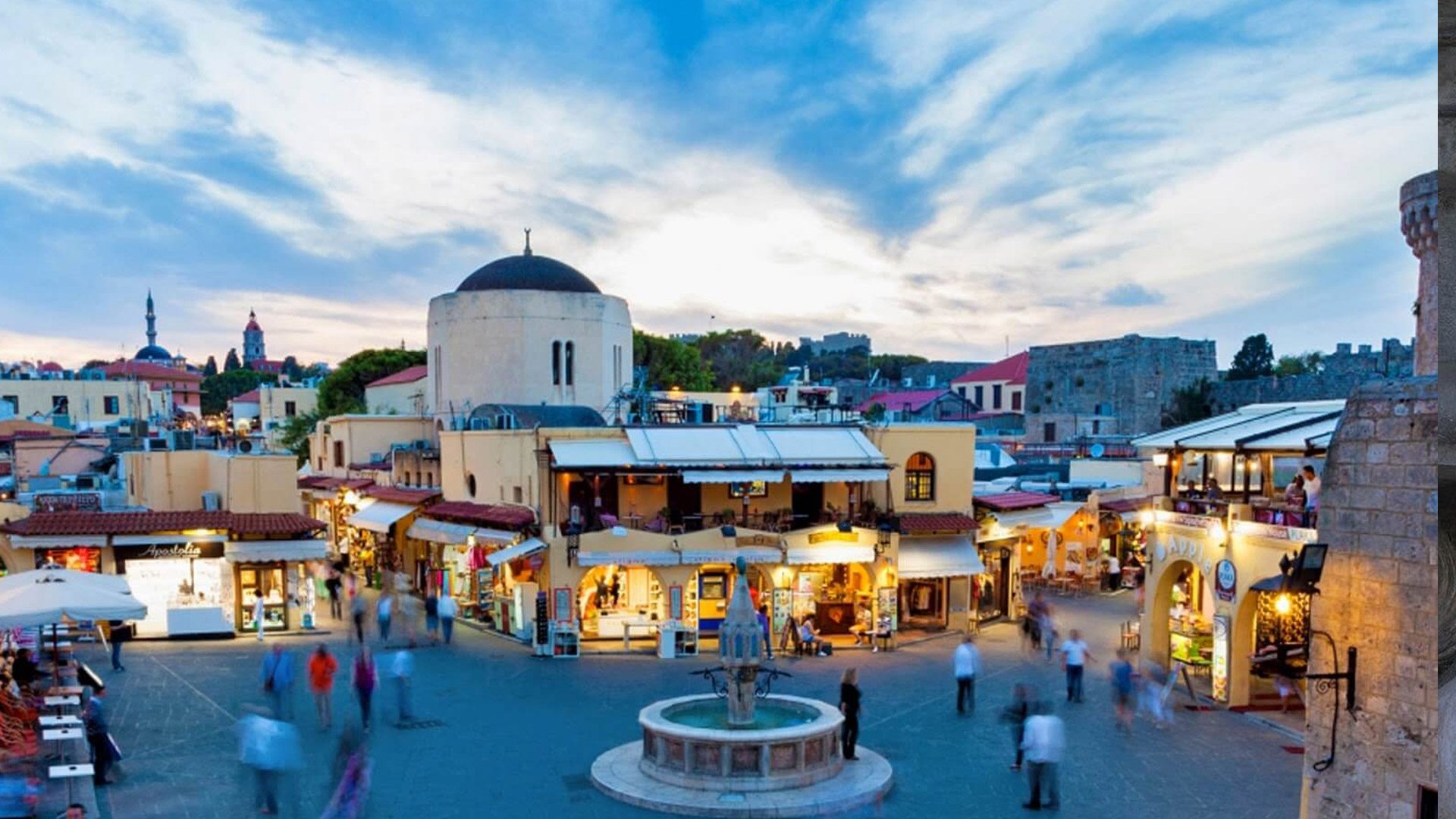 The ship arrives at Rhodes port at 09.00 and departs at 19.00.