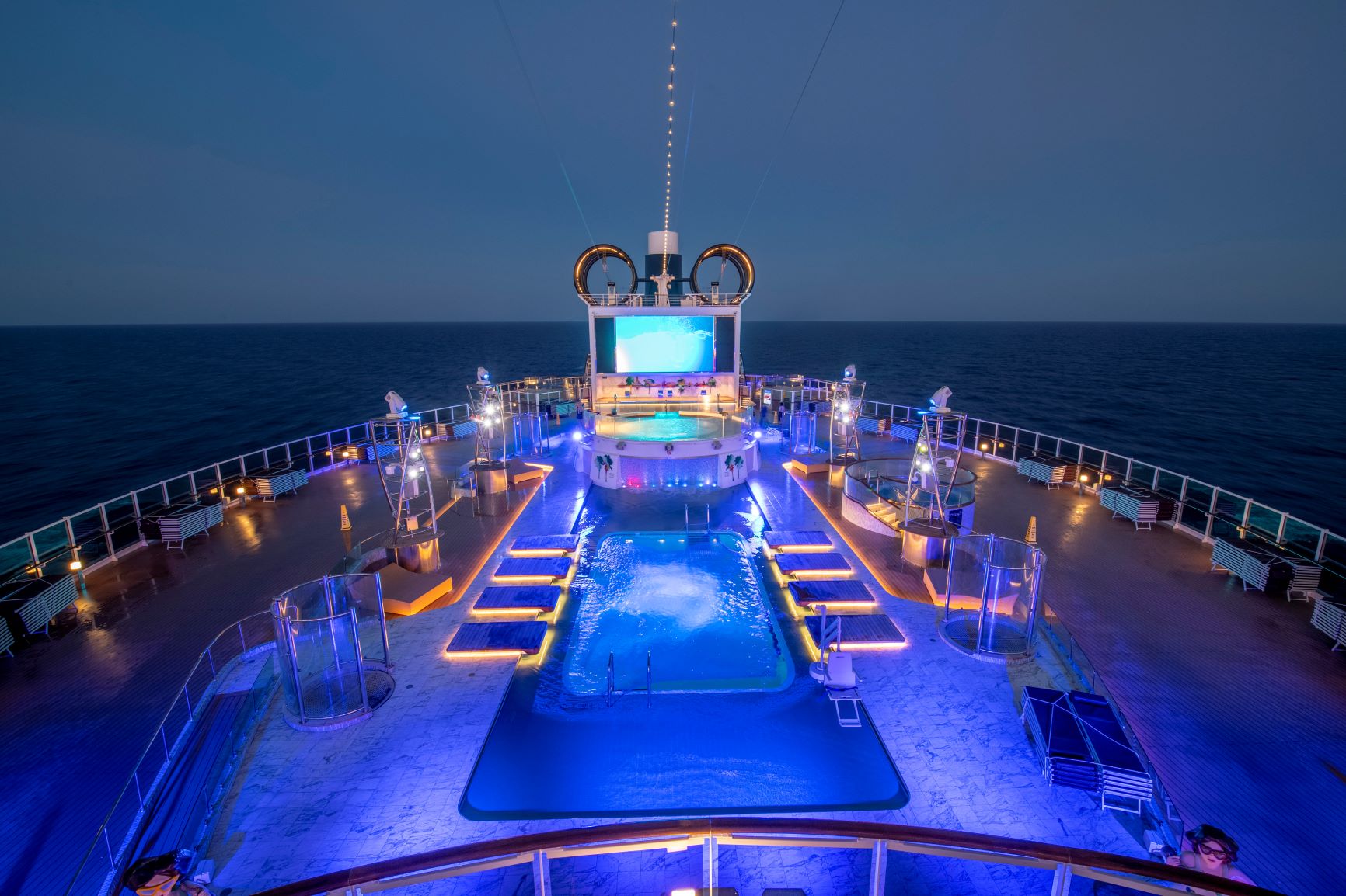 Η εξαιρετική πισίνα του MSC Seaview προφέρει μία εκπληκτική θέα στην θάλασσα και είναι ειδικά σχεδιασμένη ώστε οι επισκέπτες της να απολαμβάνουν μία μοναδική εμπειρία ενώ βρίσκονται σε επαφή με τον νερό.